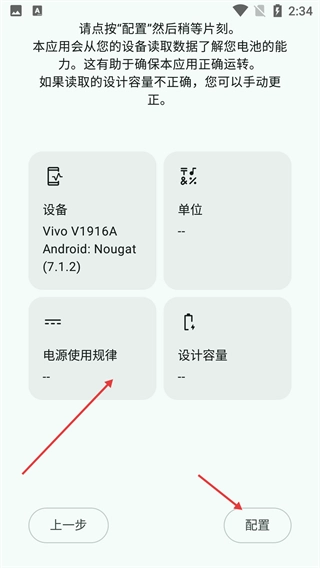 3、在该页面中,应用会读取设备数据了解电池能力,点击【配置】按钮稍等片刻完成读取,若数据有误可手动更正。
