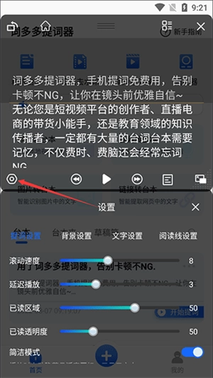 3、语速调节:个性化设置台词滚动速度,匹配说话节奏。