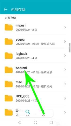 -打开内部存储向下滑动,然后点击“Android”文件夹。