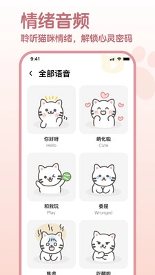 3. 猫语大全:模拟猫咪的各种叫声,如撒娇、卖萌、低吼等,让用户更加了解猫咪的情绪和意图。