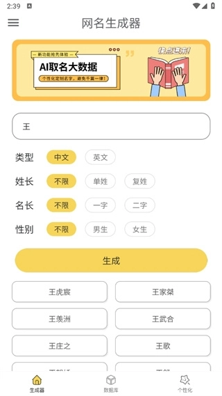 4、让特殊网名生成器用户们注册账号时再也不用为取名烦恼。