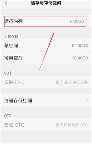 3、然后找到运行内存,并点击进入