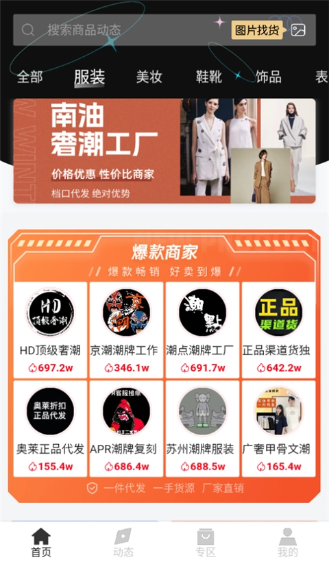 货源来自全国各大批发市场档口,新款上架每天过万。