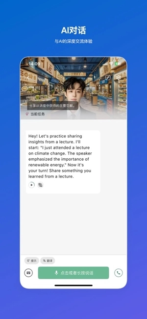 1.智能对话功能:你可以选择和智能助手开展对话练习活动。