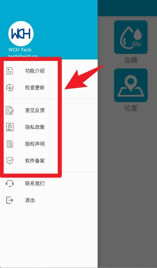 5、侧边菜单中包含功能介绍、检查更新、意见反馈、隐私政策、版权声明及软件备案,确保使用过程清晰透明。