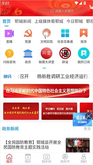依托郓城县广播电视台,实时推送时政要闻、民生热点及社会动态,覆盖新闻、时事、军事、科技、财经、时尚、娱乐等多领域,确保用户第一时间掌握本地发展脉搏。