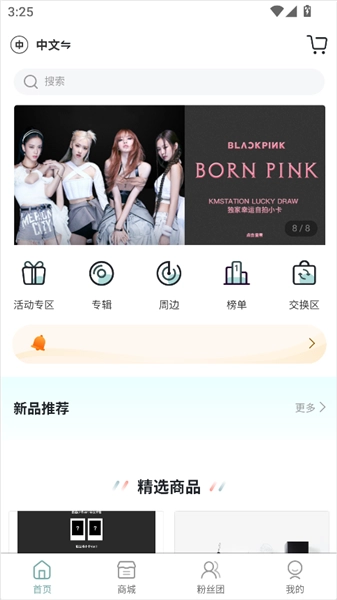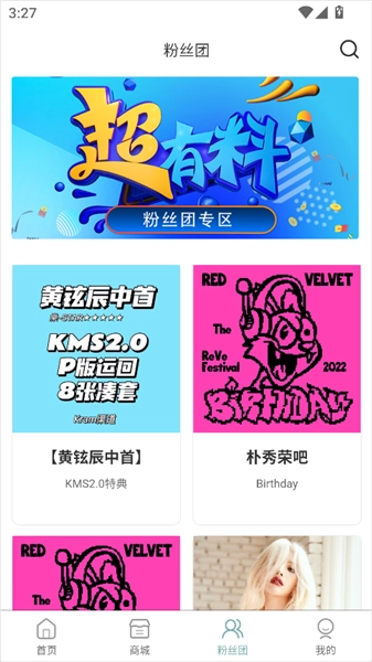 4、在【粉丝团】页面可以看到热门爱豆团队的最新周边和稀缺潮流单品。
