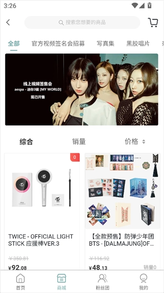 3、然后就可以进入【商城】页面,选择写真集、黑胶唱片、杂志以及美妆等分类,查找自己想要的商品。