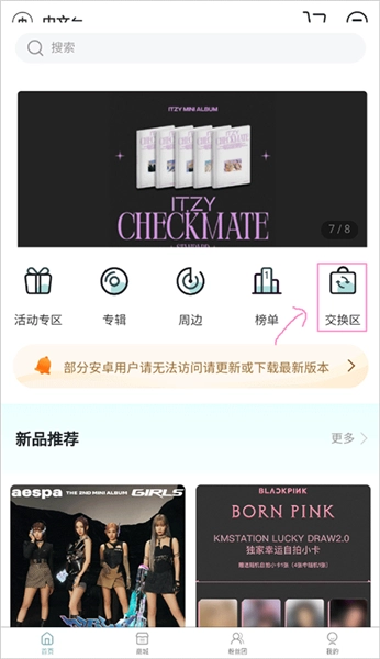 1、首先在首页的功能区选择“交换区”。