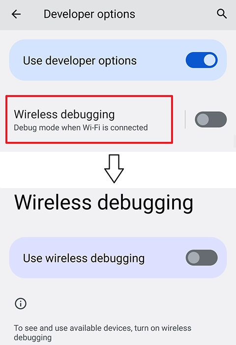 4、启用“无线调试”。