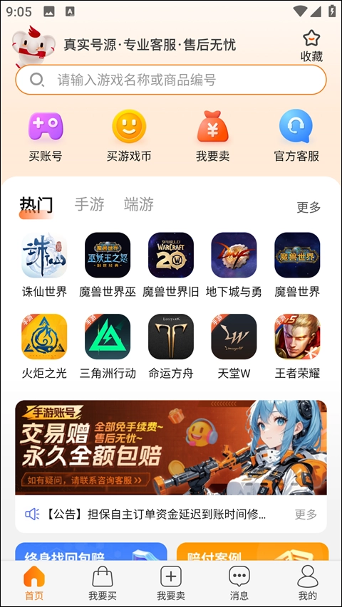覆盖网游道具、账号、点卡、代练等全品类交易,支持MMORPG、MOBA等各类游戏需求。