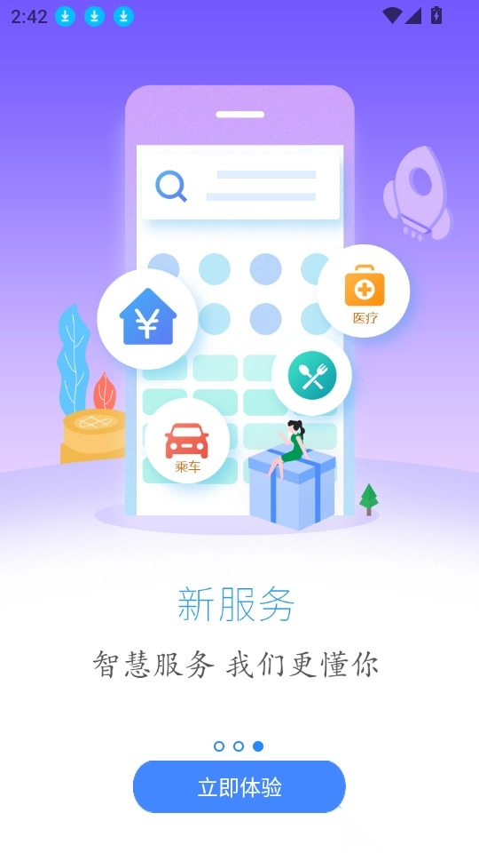 2、之后向右滑动界面,在第三页的新服务界面中点击“立即体验”按钮来进行下一步。