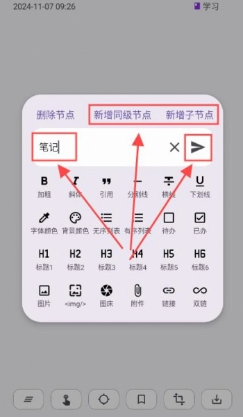4、修改界面支持新增同级节点与子节点,以此实现导图项目的扩展。