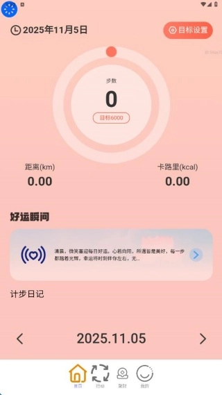 首页提供了免费的计步功能,用户可实时查看步数等相关信息。