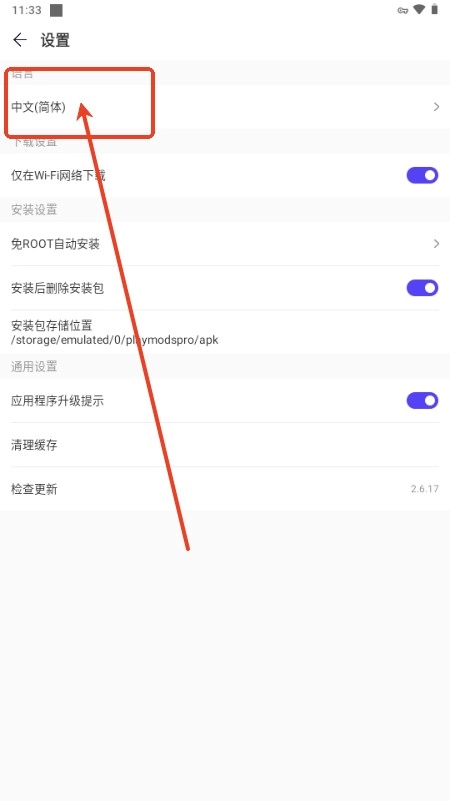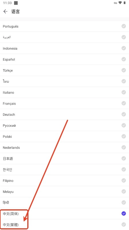 4、点击切换简体中文。
