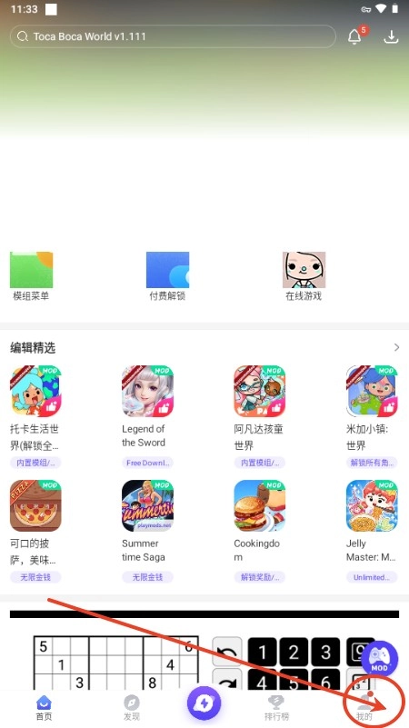 1、点击页面右下角的“我的”选项;