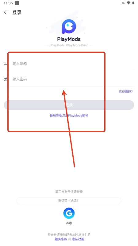 3、在这里输入邮箱和密码完成登录;