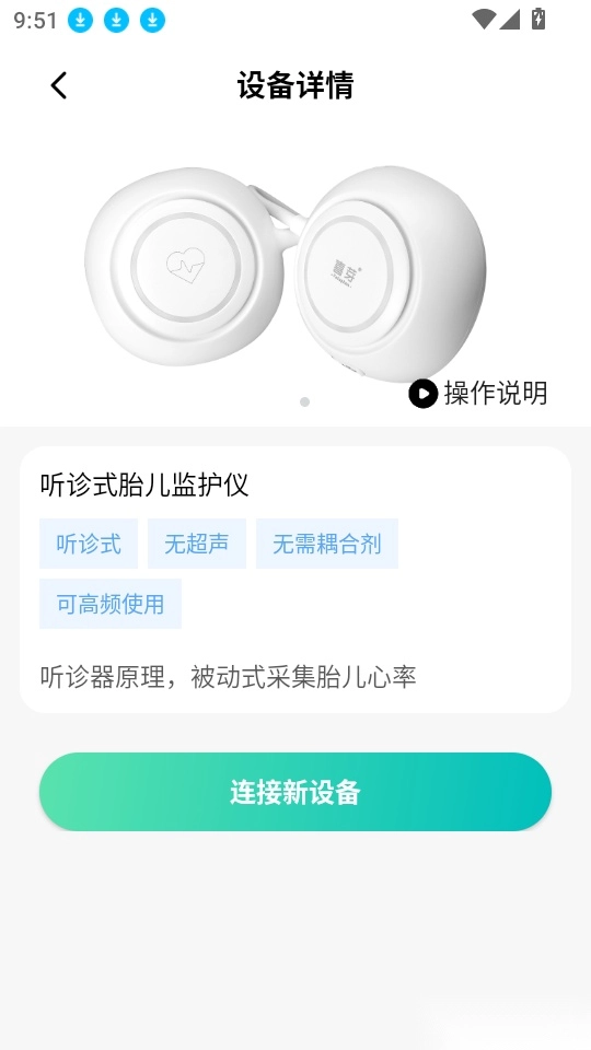 可以对当前宝宝的胎心来实时监测,连接智能设备就可找胎心,轻松监测胎心。