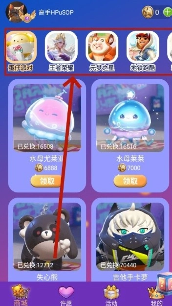 2、首页提供多种类型的游戏皮肤免费领取,包含了蛋仔派对、王者荣耀、元梦之星、地铁跑酷等等游戏