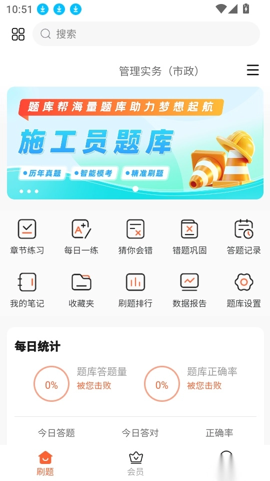 施工员题库帮是一款专门面向施工员考证学员的刷题工具,海量优质题库资源,涵盖各类题型与考试科目,助力用户全面掌握知识点。软件能精准对接考试大纲,实现针对性练习,全方位支撑备考需求。平台设有精选题库、章节精讲、历年真题、高频考点等功能模块,用户可自由选择使用,同时配备智能督导系统,全程辅助学习备考。此外,免费版还提供最新学习及考试资讯,方便用户及时了解考试动态与备考技巧,提升备考效率。有需要的用户欢迎前来体验!
