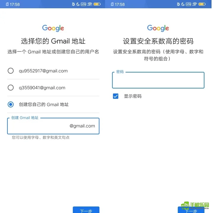 你可以选择一个或创建一个账户。谷歌会随机生成两个账户供你选择,你既可以直接选用谷歌提供的,也能自行创建一个账户地址。