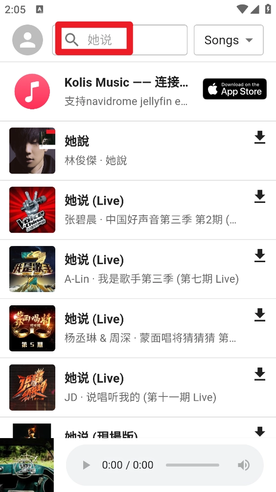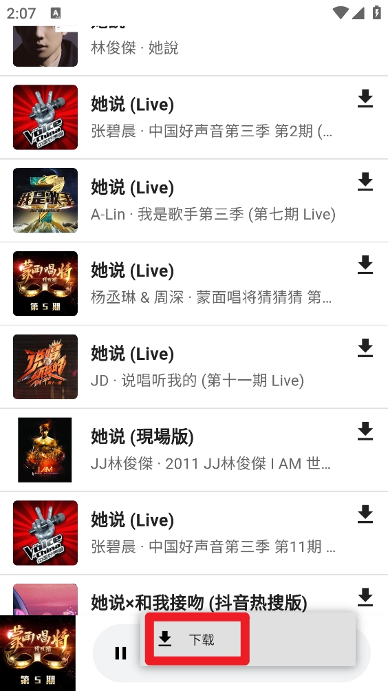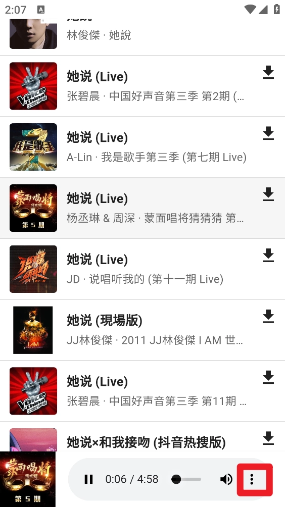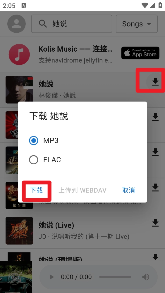 3、在歌曲右侧点击图标,选定格式后再次点击""就可以了。