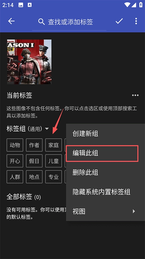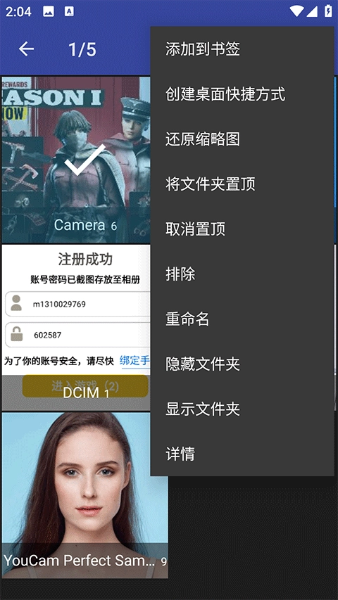 3、长按缩略图、文件夹、标签、相册等,更多选项。