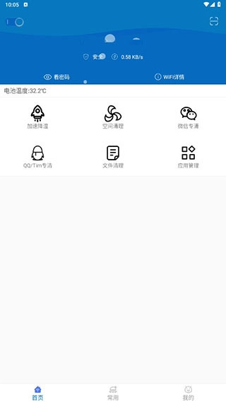 用户点击屏幕下方常用按钮,可以进入到常用页面,页面内有存储管理和网络工具两大功能,它们内部的小功能十分多。