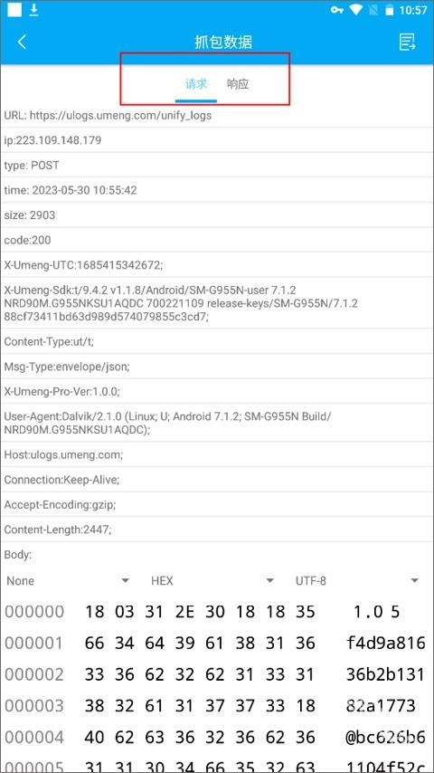 7、点击其中一个抓取数据页面,你会看到请求和响应的抓包数据。