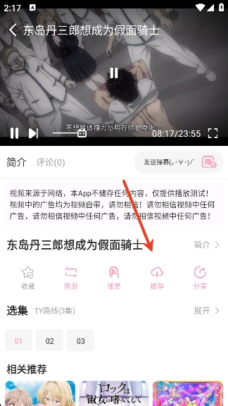 软件支持本地缓存,点击【缓存】选择需要缓存的视频资源即可。