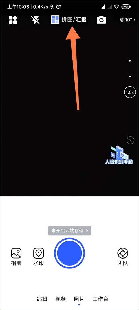 1、启动马克相机,点击顶部的【拼图/汇报】按钮。