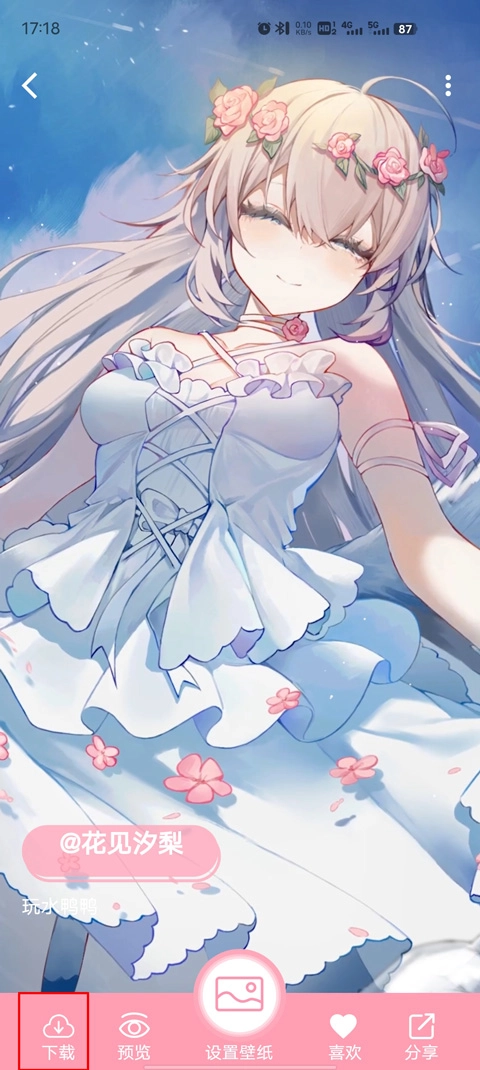 2、浏览并选择一张想要保存的壁纸,点击左下角“”按钮;