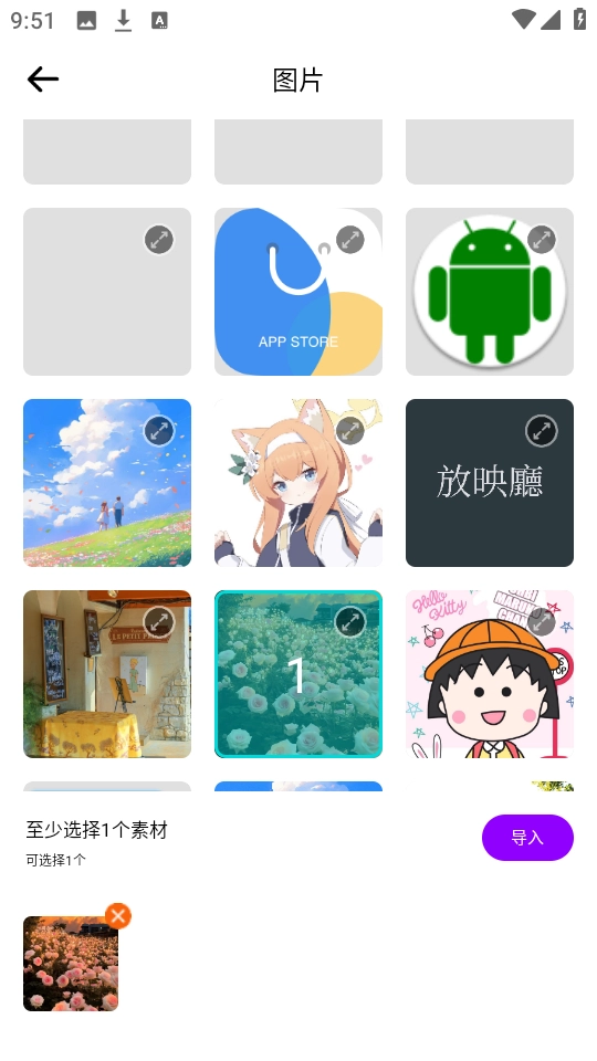 4、挑选一张心仪的图片,点击“导入”按钮加载到编辑界面。