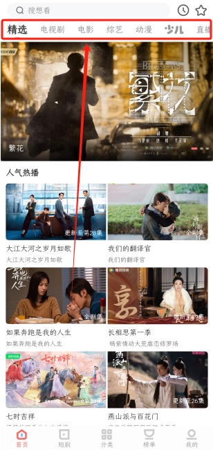 2、通过栏目选择喜欢的影视资源