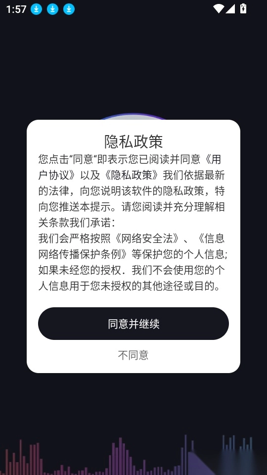1、首先打开应用点击“同意并继续”按钮来进入中。