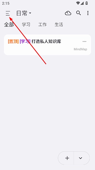 1、启动知拾笔记应用,点击界面左上角的三条横线图标按钮