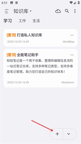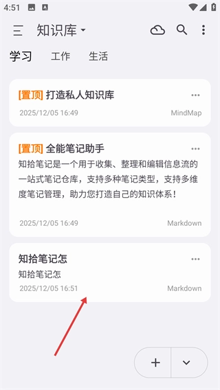 4、新创建的笔记会显示在内容列表中。