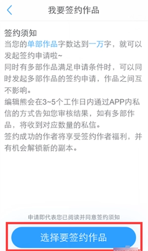 7、仔细阅读签约条款后,选择要签约的作品。