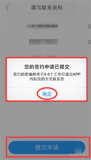 9、填写完整联系方式以便编辑联系,提交申请后静候佳音。