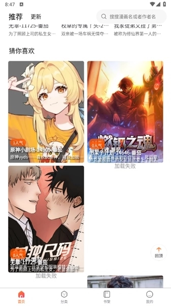 5. 书架管理:支持用户自定义书架,将喜爱的漫画添加到书架中,方便随时查看和管理。