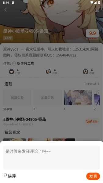 5.另外我们可以在漫画的简介界面对其进行留言评论