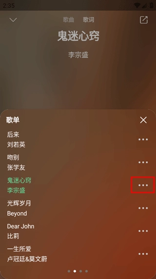 2、点击歌曲右侧的三个点,即可选择所需音质。