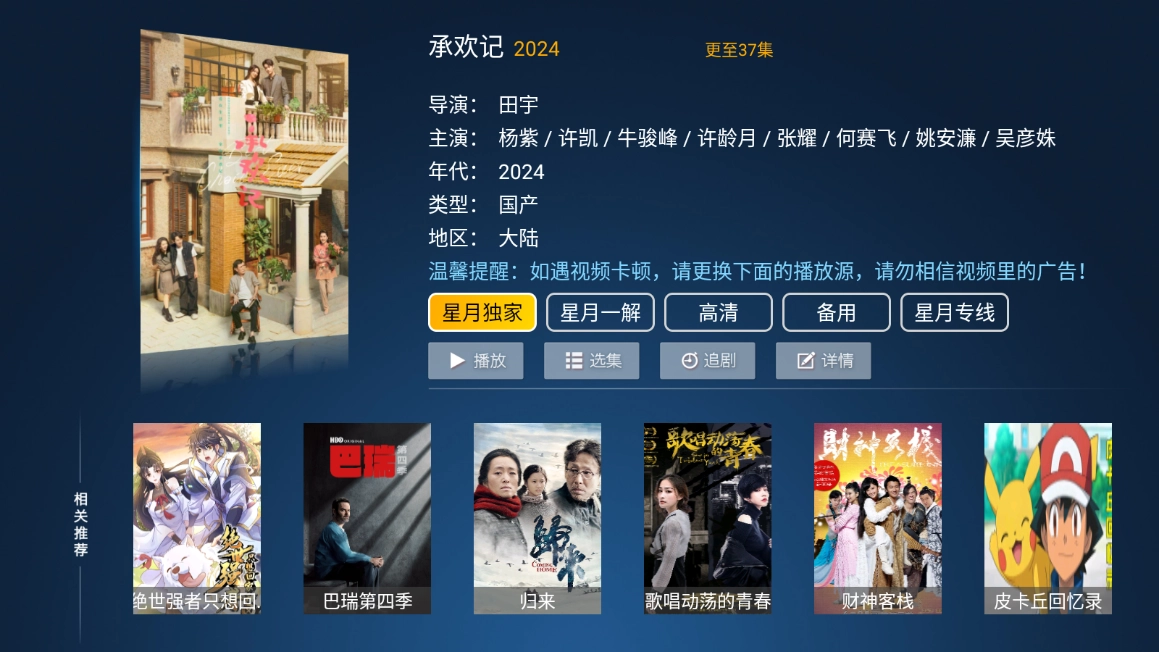 4、在播放页面,用户可自由切换播放线路,并支持选集功能,带来更便捷的观影体验。