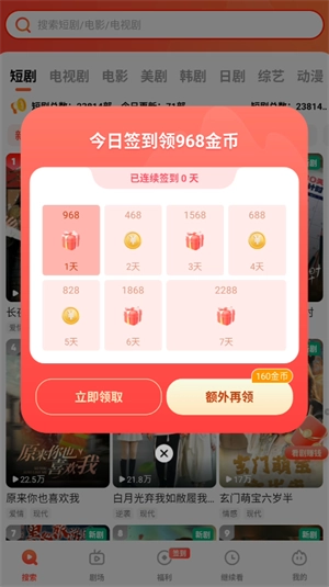1、打开火柴短剧手机正版,点击签到,连续签到可以得到丰厚的福利。