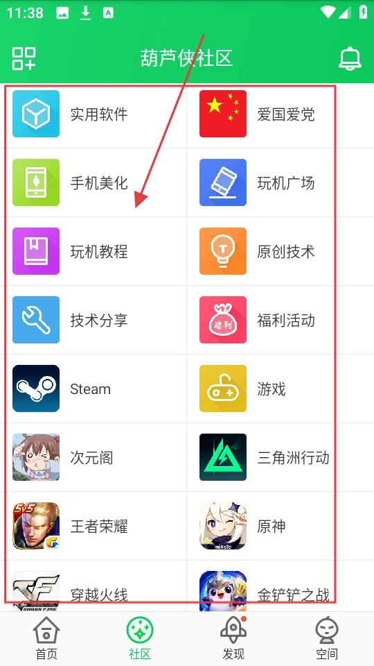 1、在葫芦侠社区里,找到感兴趣的板块比如【次元阁】,点击进入就能逛啦。