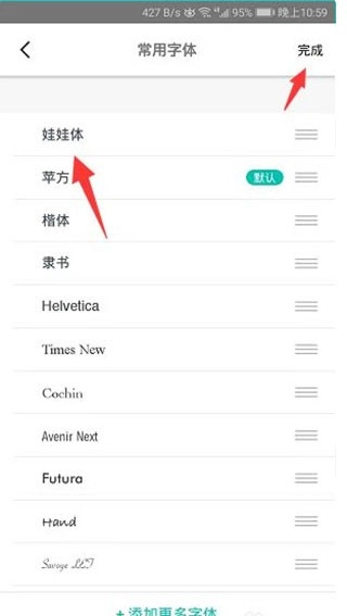 将目标字体拖至首位后,点击右上角【完成】按钮保存设置。