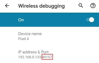 输入“无线调试”界面中显示的端口号(每次启用“无线调试”时都会变化)。