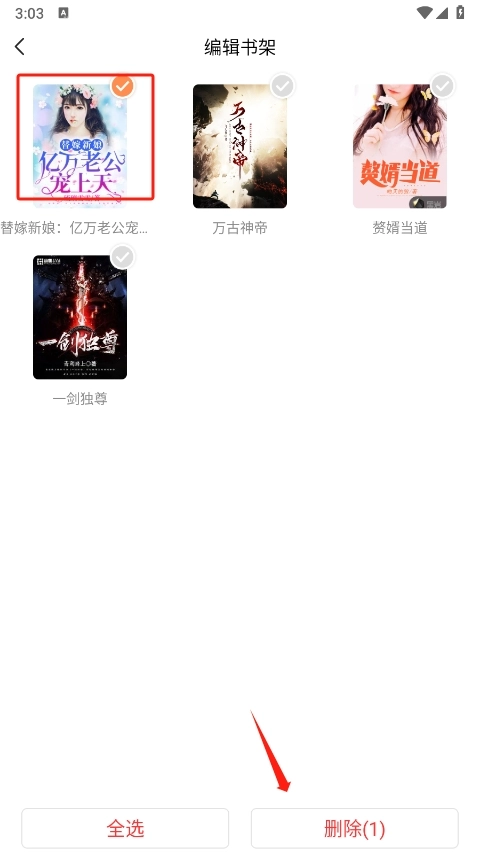 3、勾选上要删除书签的小说点击删除即可。