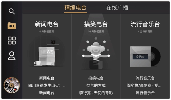 2、软件界面简洁明了,各类精选电台一目了然,等你随时挑选,发现新鲜节目。