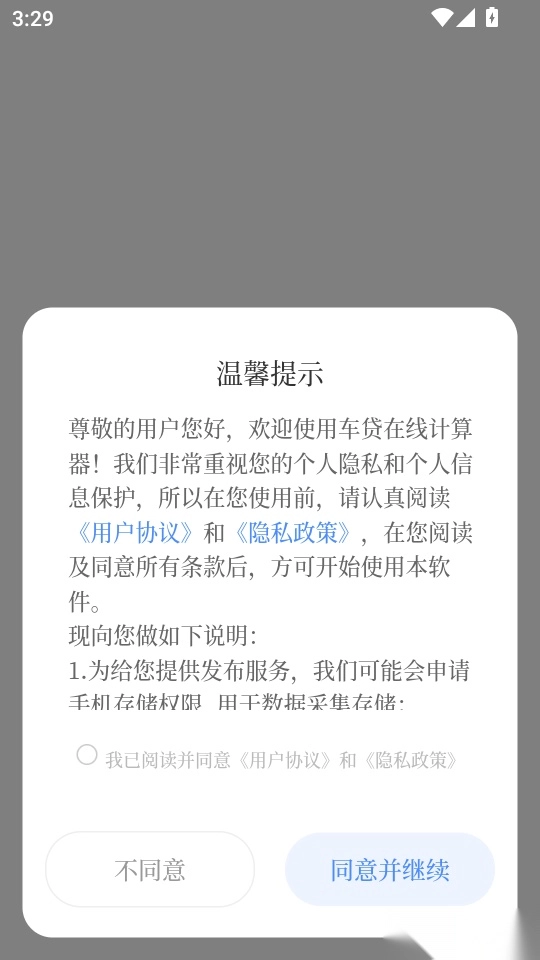 1.首先打开软件阅读“温馨提示”后,点击“同意并继续”按钮进入